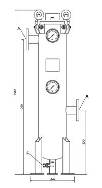 Filter dimensions : height 1280 mm, Ø 270 mm
