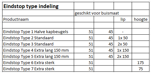 Eindstop buisrail Type 5 Extra lang 150 mm - Complete set (Prijs op aanvraag)